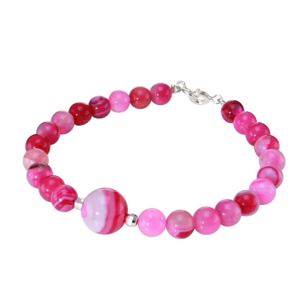 Bracelet Agate Rose Teintée 6-10mm et Argent