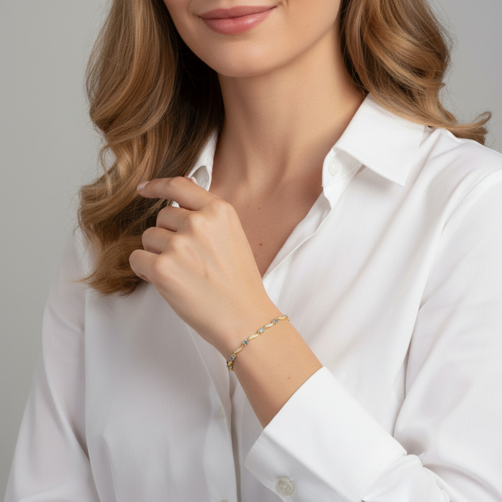 Bracelet en Or Jaune 375 2 tons et Topazes bleues traitées