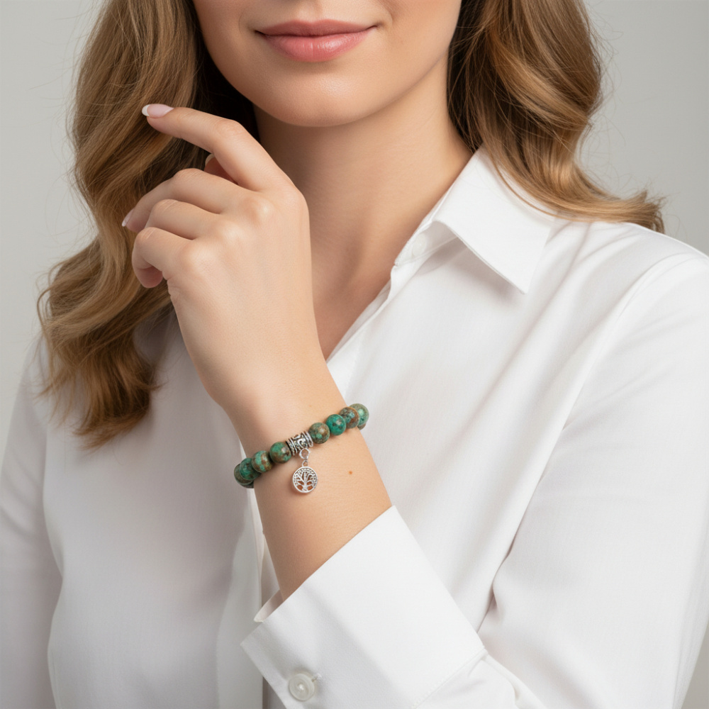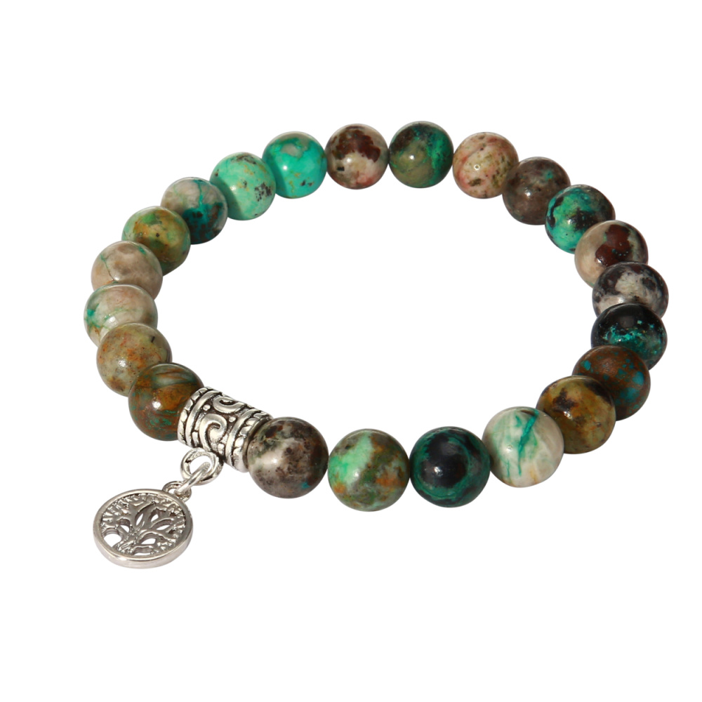 Bracelet Chrysocolle 8mm et Breloque Arbre de Vie