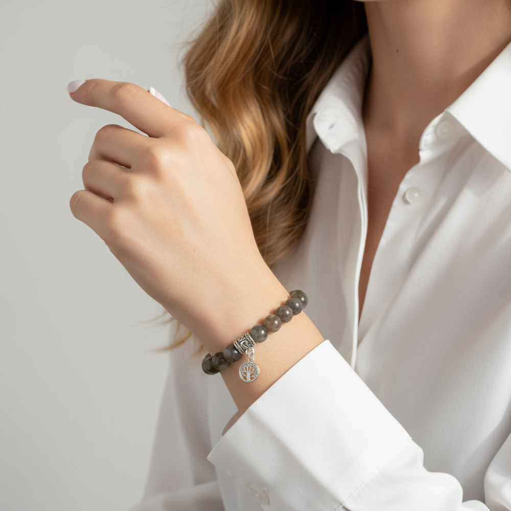 Bracelet Labradorite 8mm et Breloque Arbre de Vie