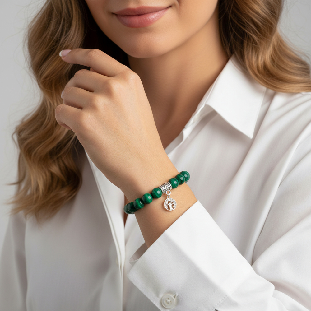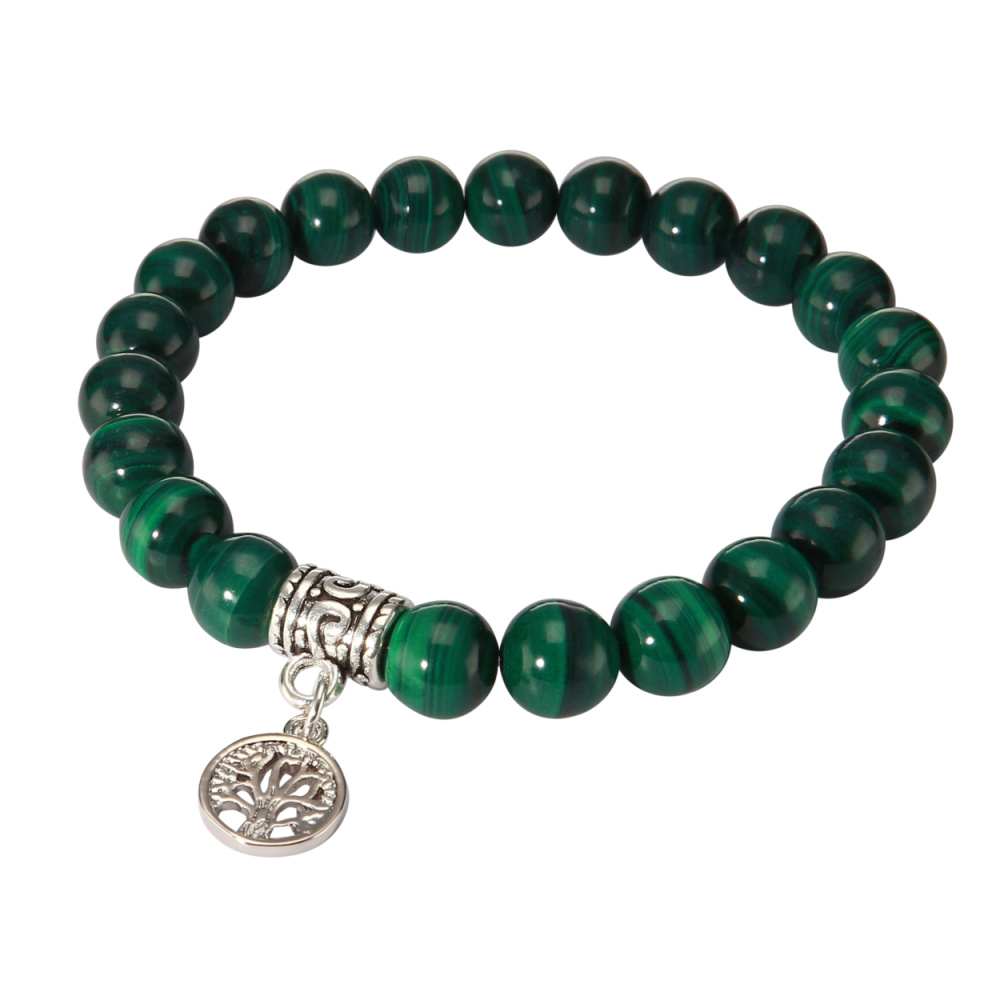 Bracelet Malachite 8mm et Breloque Arbre de Vie