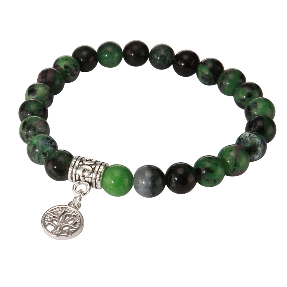 Bracelet Rubis Zoisïte 8mm et Breloque Arbre de Vie