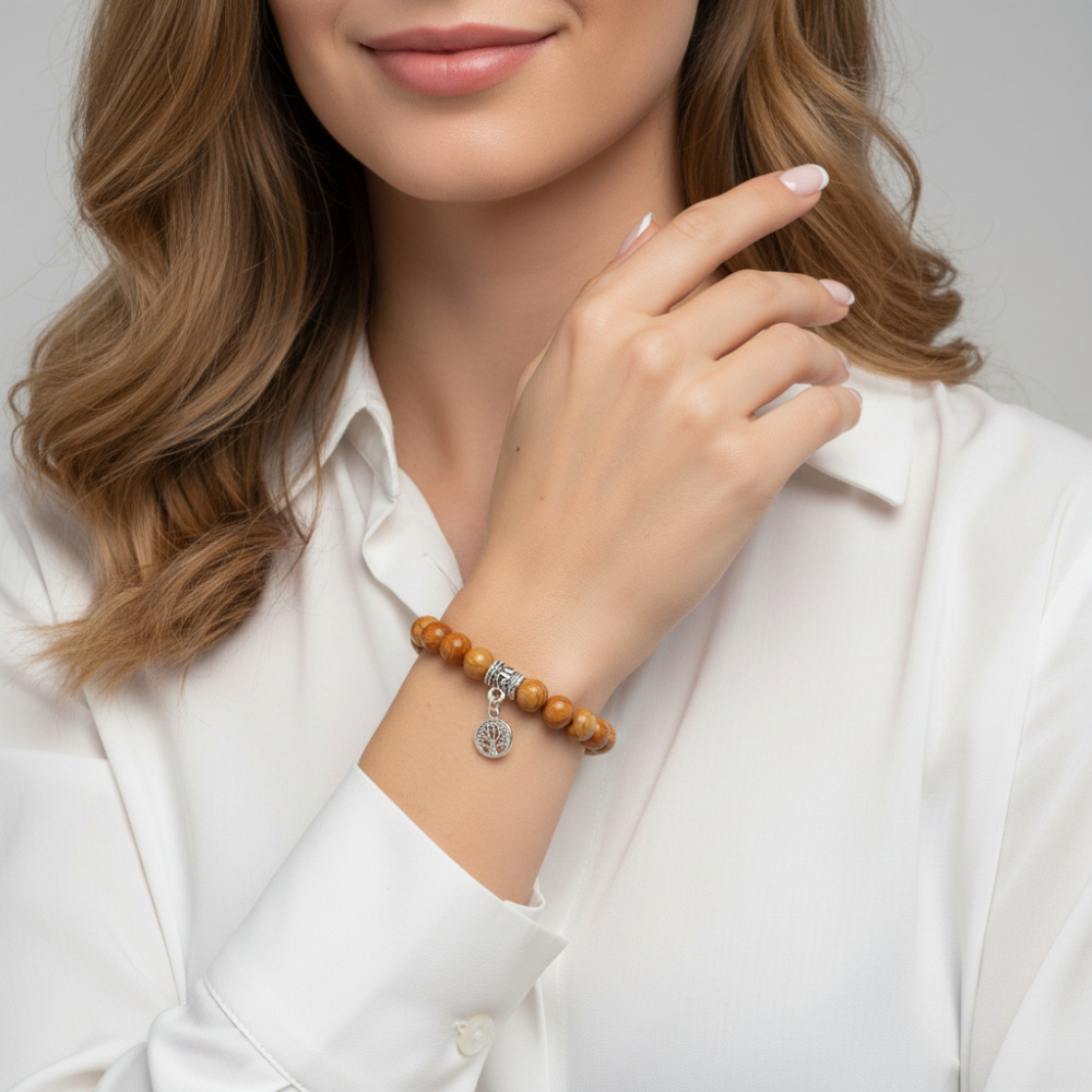 Bracelet Jaspe Bois 8mm et Breloque Arbre de Vie