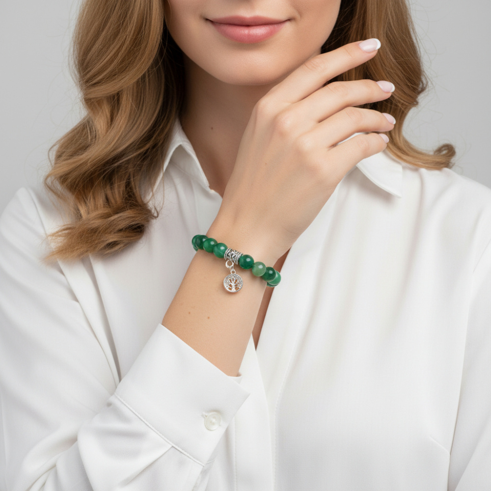 Bracelet Agate Verte Teintée 8mm et Breloque Arbre de Vie