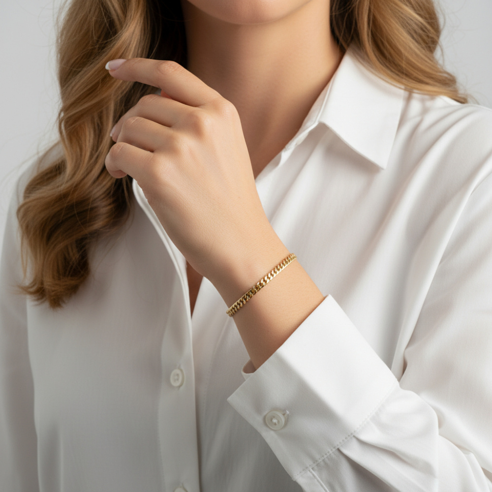 La praticité et l'élégance de ce bracelet en or jaune en font un accessoire populaire qui permet à ceux qui le portent de bénéficier d'un équilibre optimal entre style et confort. La chaîne à maille gourmette, avec sa capacité à offrir une apparence robuste tout en restant légère, suscite un vif intérêt chez les amatrices d'élégance. Les dimensions généreuses confèrent à ce bijou une présence élégante et le rendent idéal pour être porté seul ou associé à d'autres bijoux.