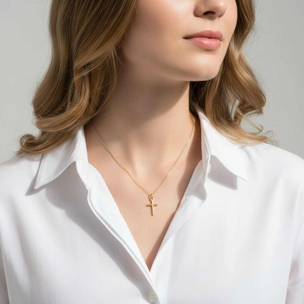 Fabriqué avec précision, cet accessoire raffiné allie la beauté luxueuse de l'or jaune à la signification spirituelle de la croix.