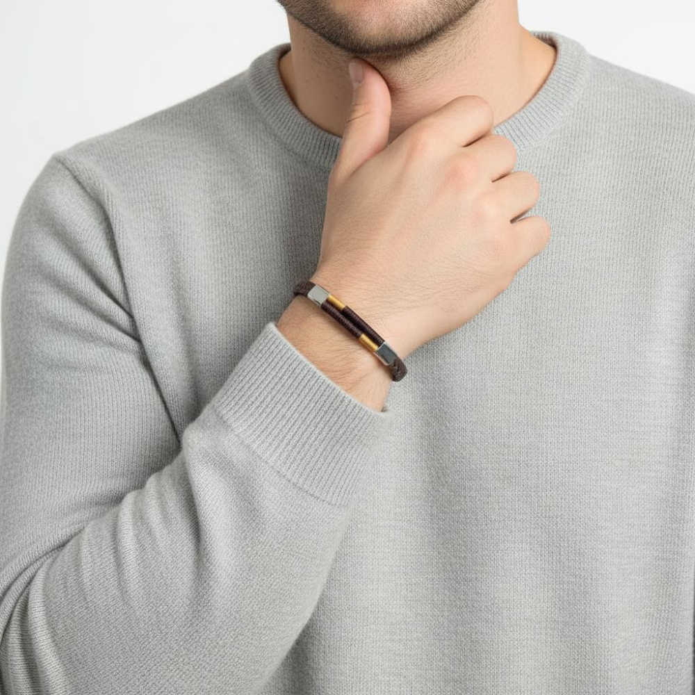 Que diriez-vous d'adopter ce bracelet pour homme en matière synthétique marron tressée qui présente une conception élégante et originale ?