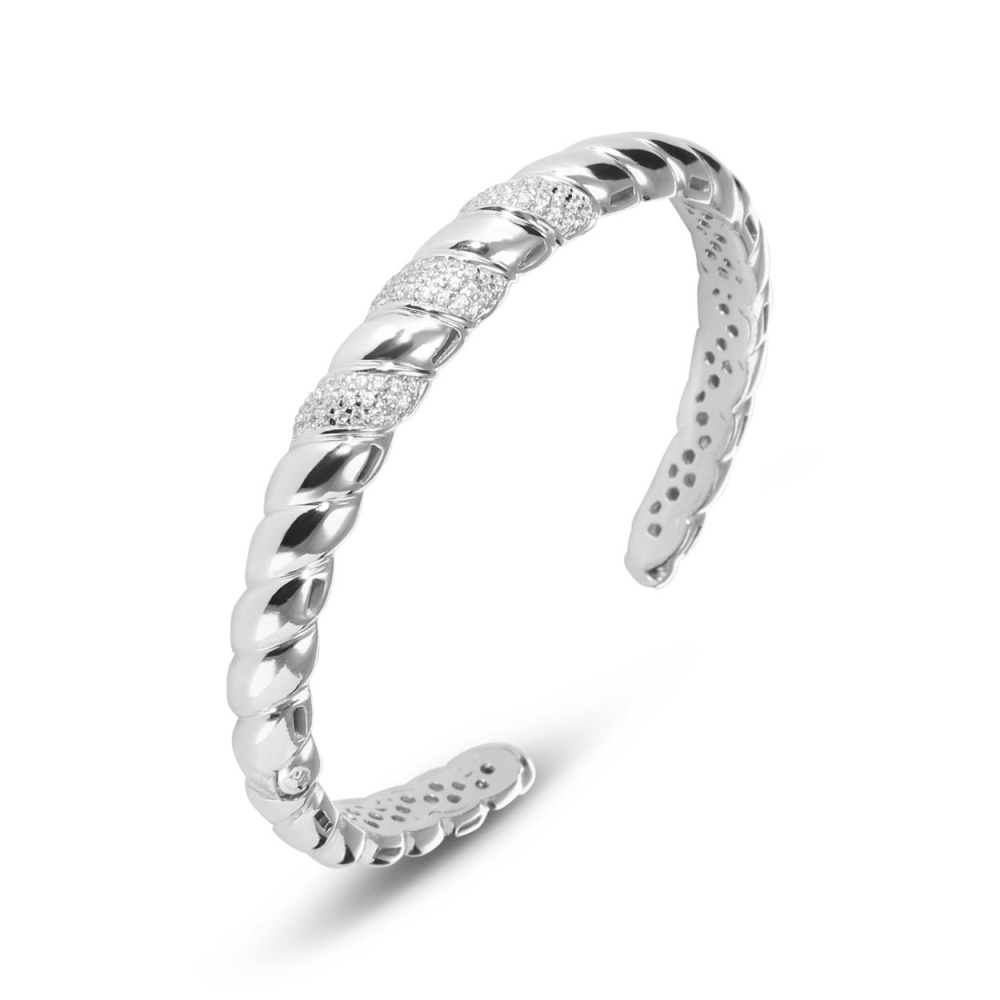 Bracelet jonc en argent rhodié 925 avec effet torsade et oxydes de zirconium