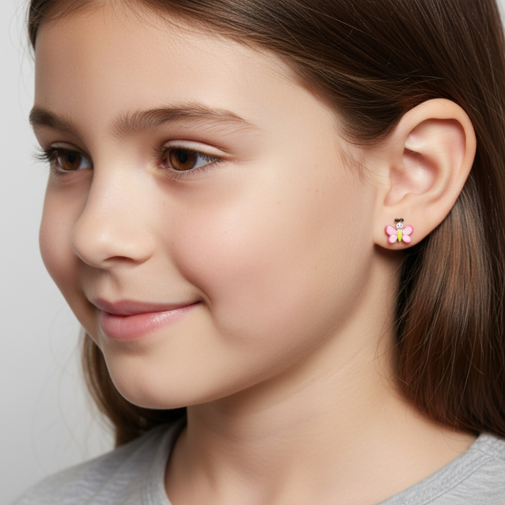 Boucles d'oreilles puces en argent pour enfant en forme de papillon avec émail