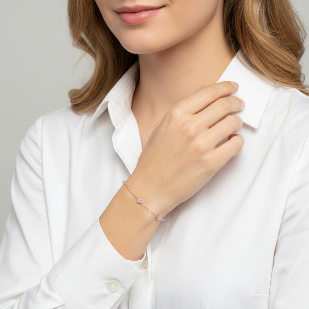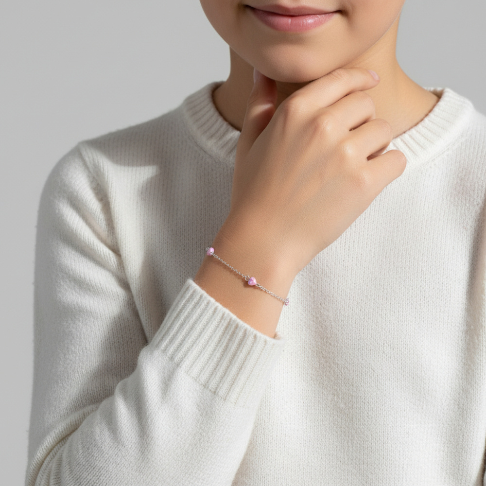 Bracelet Enfant Argent Coeur rose en émail - Ref : 55549