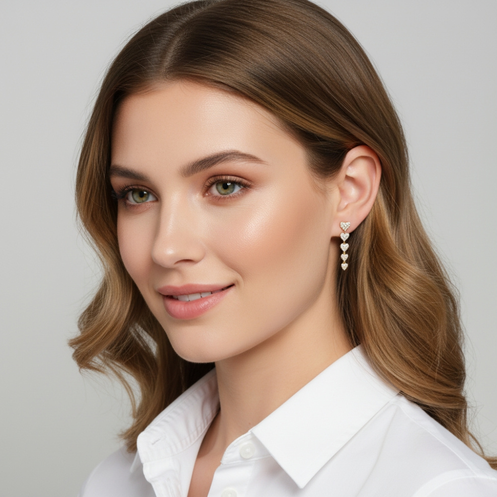 Pour toutes celles qui cherchent une paire de boucles d'oreilles de style pendant qui affinent le visage, ce modèle en argent doré deviendra facilement votre bijou préféré. Ces boucles sont délicatement ornées de cinq coeurs en chute qui sont sertis d'oxydes de zirconium blancs. Les motifs en coeur sont de taille décroissante pour encore plus d'originalité et de modernité.