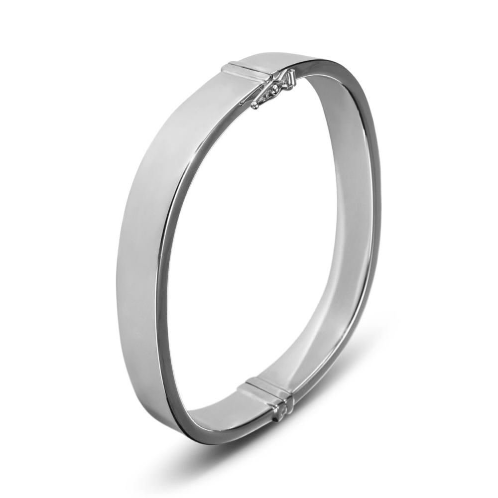 Ajoutant une note de raffinement à toutes vos tenues tout en sublimant vos gestuels, ce bracelet jonc en argent rhodié est la pièce parfaite pour vous mettre en valeur. Il impose sa présence par ses volumes généreux et révèle un design épuré et minimaliste qui vous séduira. Comme il est rigide, il est plus facile et confortable à porter tout en étant robuste. Le système d'attache avec ressort et huit de sécurité renforce la sécurité.