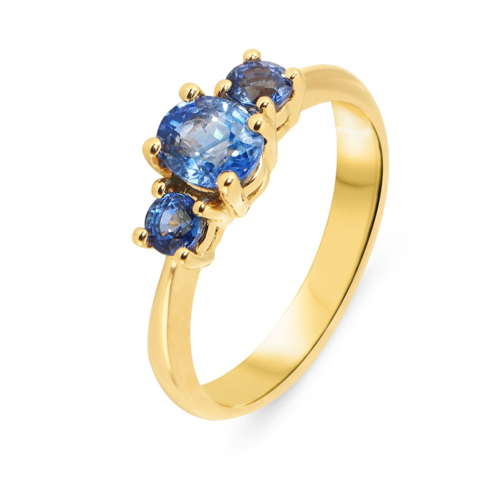 Bague Or Jaune 750 Saphirs de Ceylan Ovale et Ronds