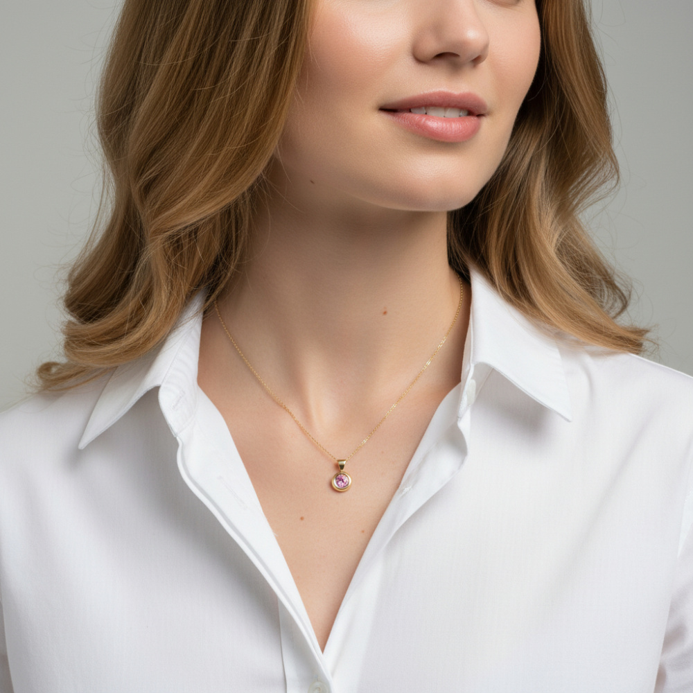 Pendentif Or Jaune 750 Saphir Rose rond 4mm - Ref : 56307