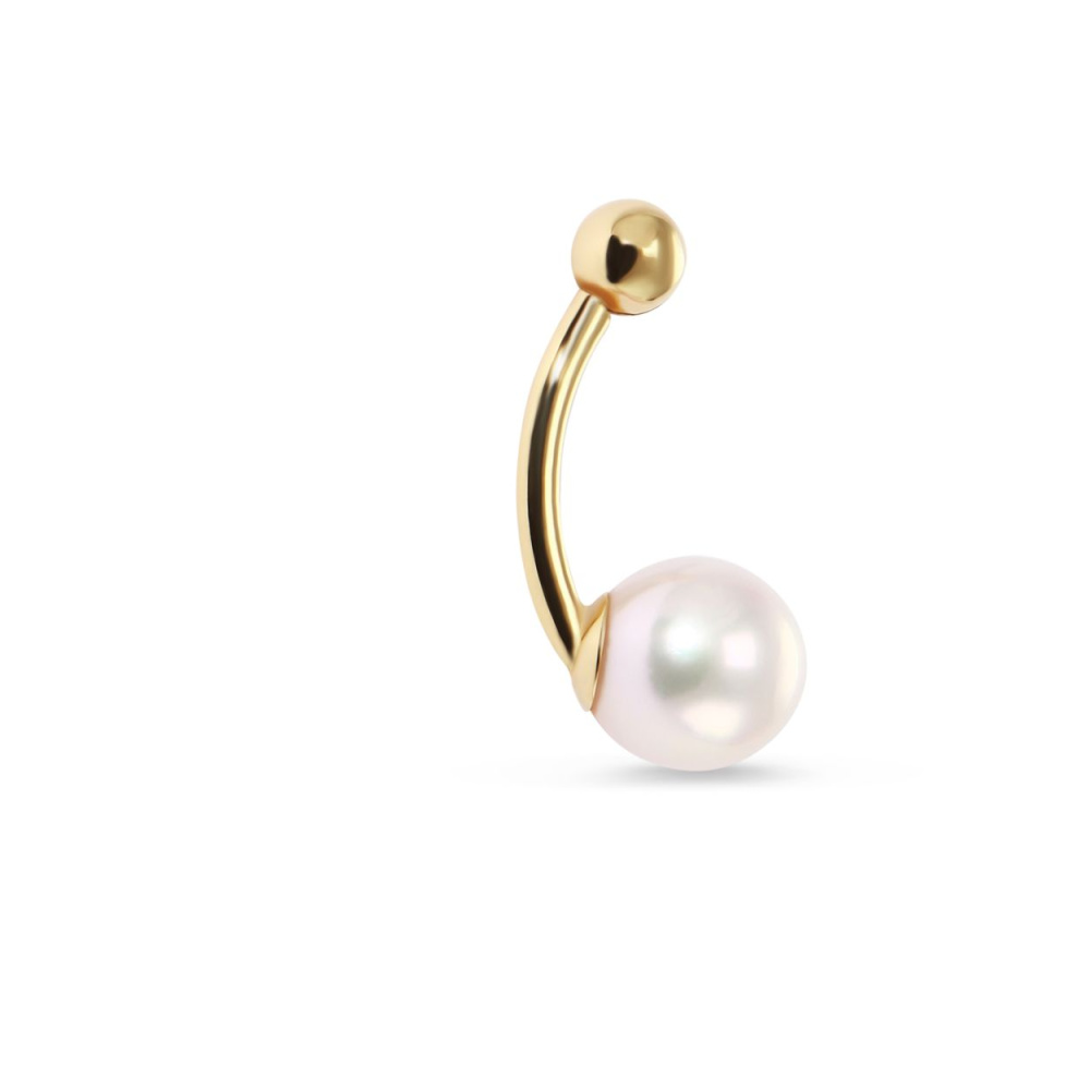 Ce piercing pour nombril en or jaune est orné d'une somptueuse perle de culture Akoya.