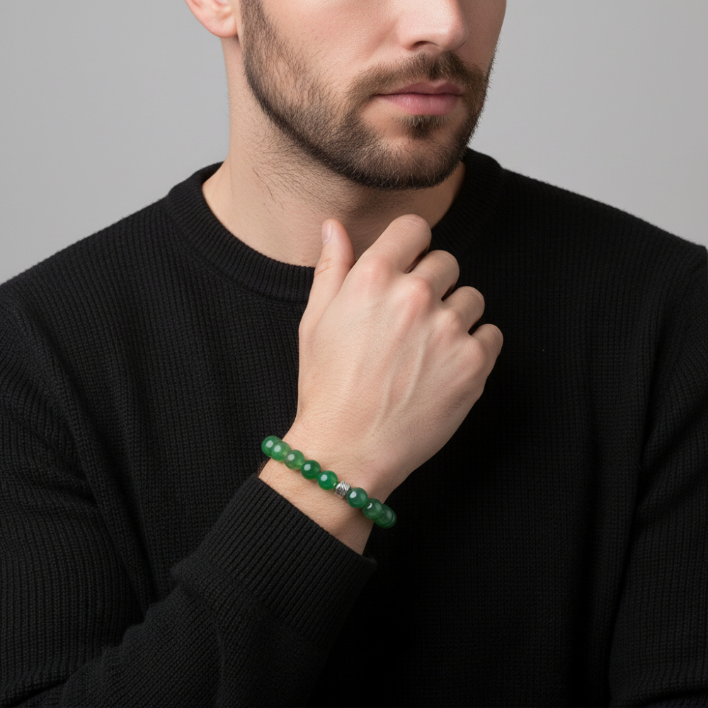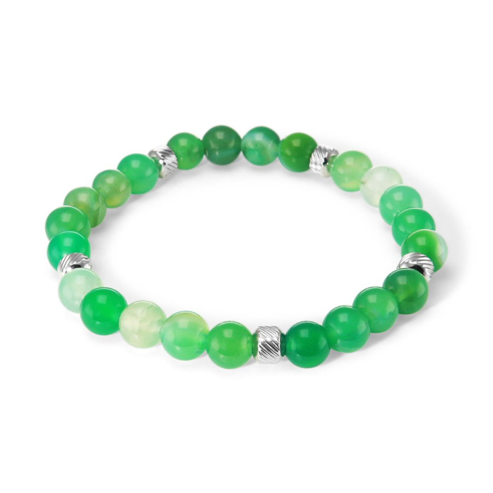 Bracelet Homme Agate Verte Teintée 8mm et billes striées en acier