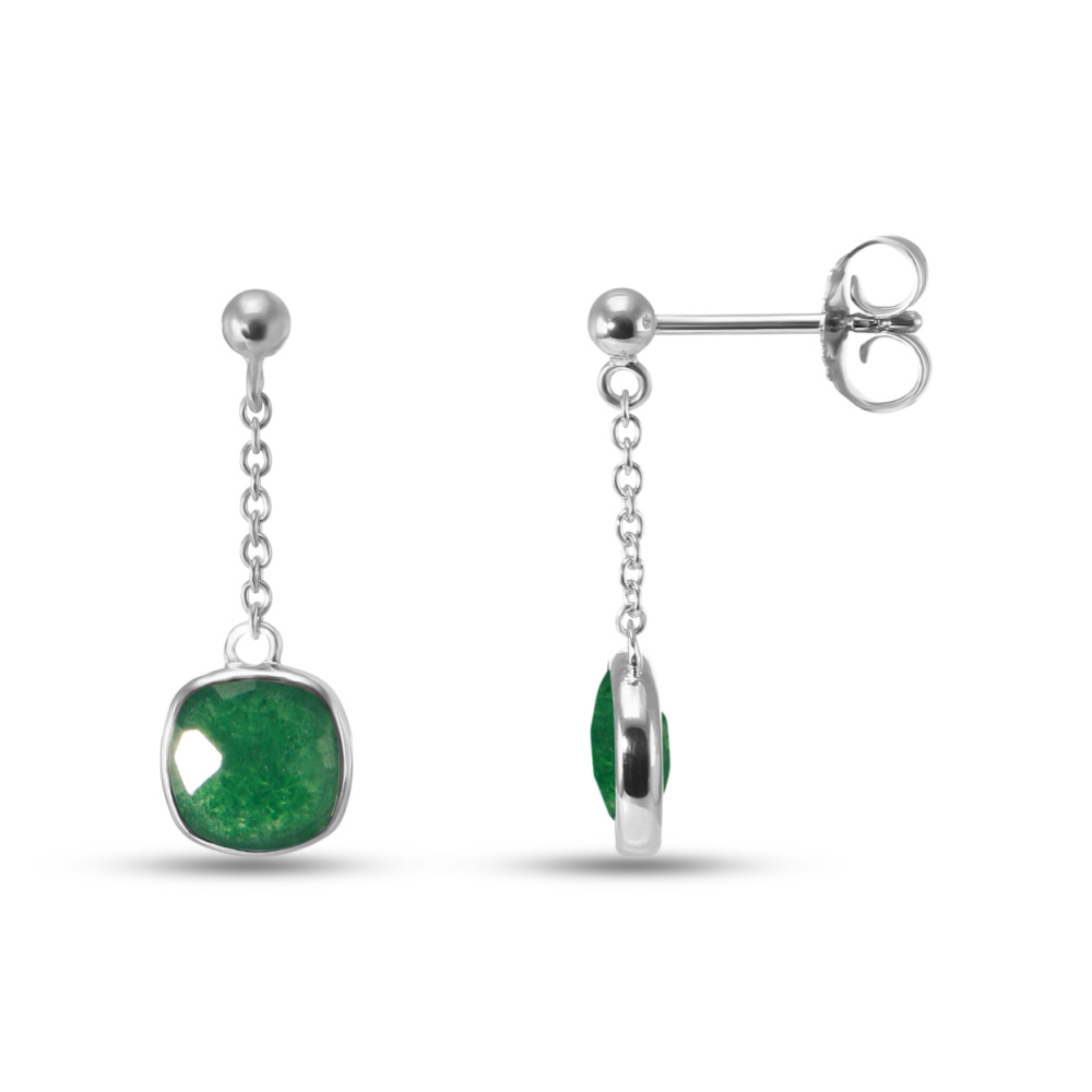 Boucles d'oreilles Pendantes Argent Rhodié Aventurine coussin - Ref : 57086