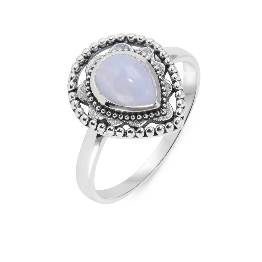 Bague Bohème Argent 925 Calcédoine Poire 8x6mm - Ref : 57121