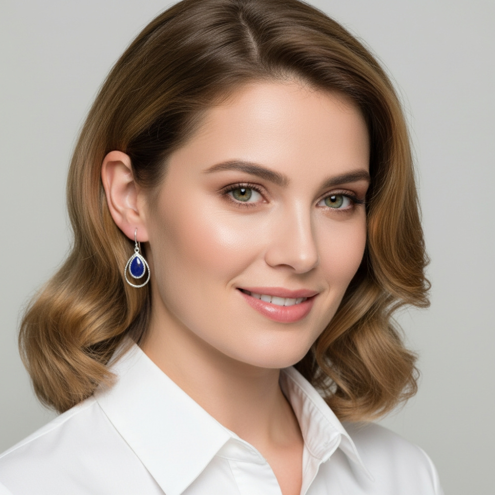 Boucles d'oreilles Pendantes en Argent et Lapis Lazuli Poire Cabochon