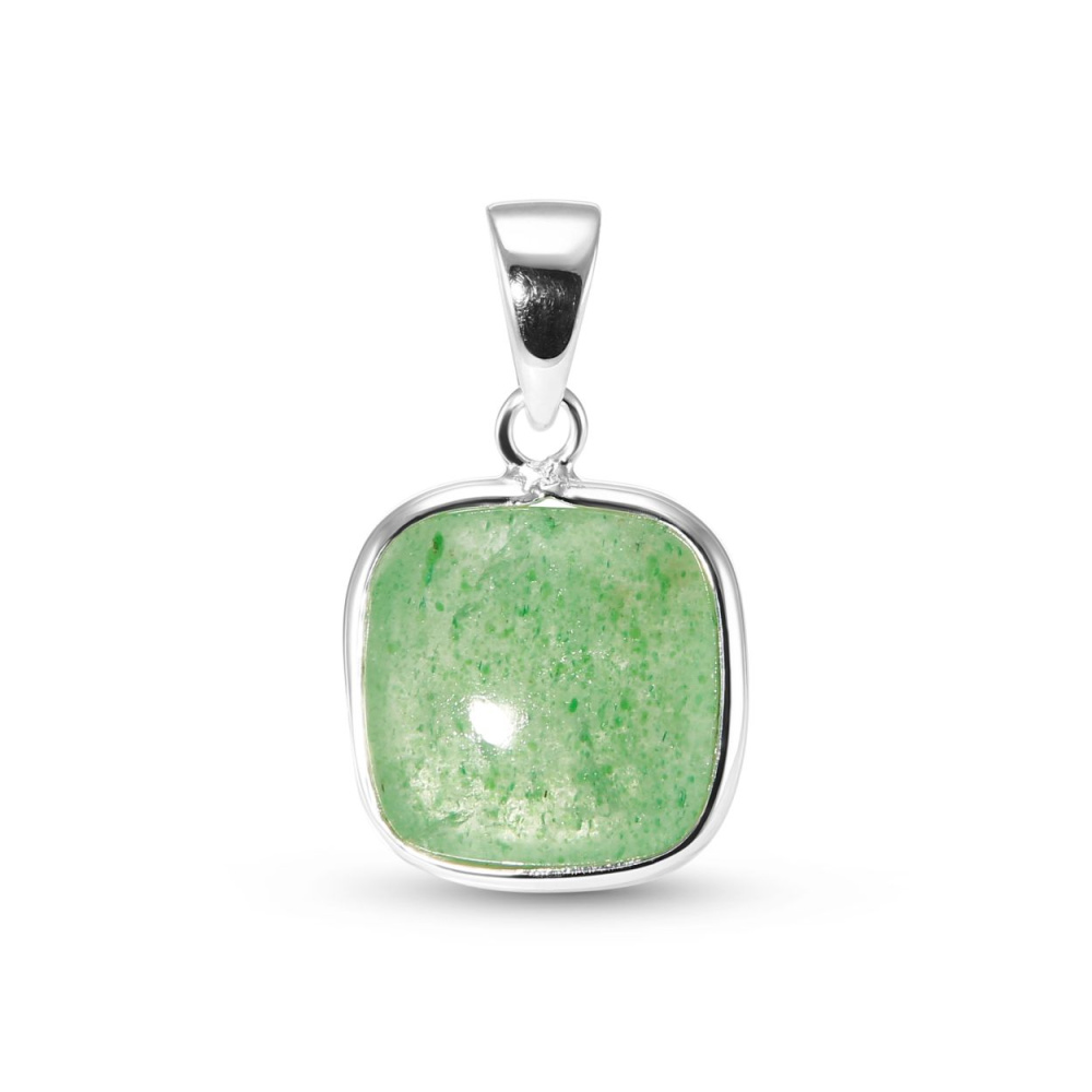 Pendentif Argent 925 Aventurine Coussin 10mm Cabochon Serti Clos