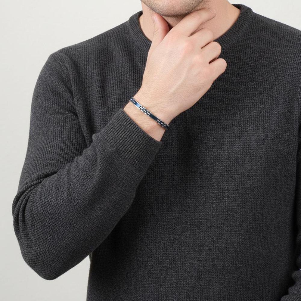 Bracelet Homme en Acier composé de maillons de gris et bleu