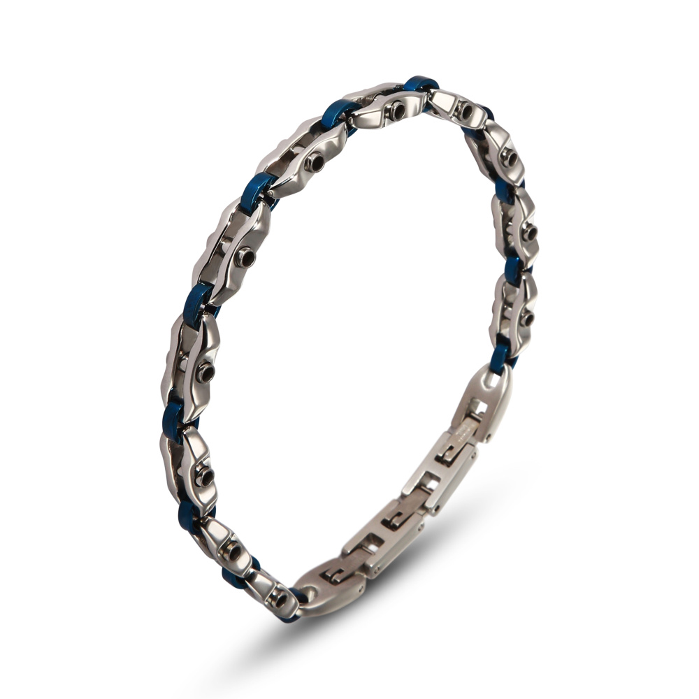 Bracelet Homme en Acier composé de maillons gris et bleus