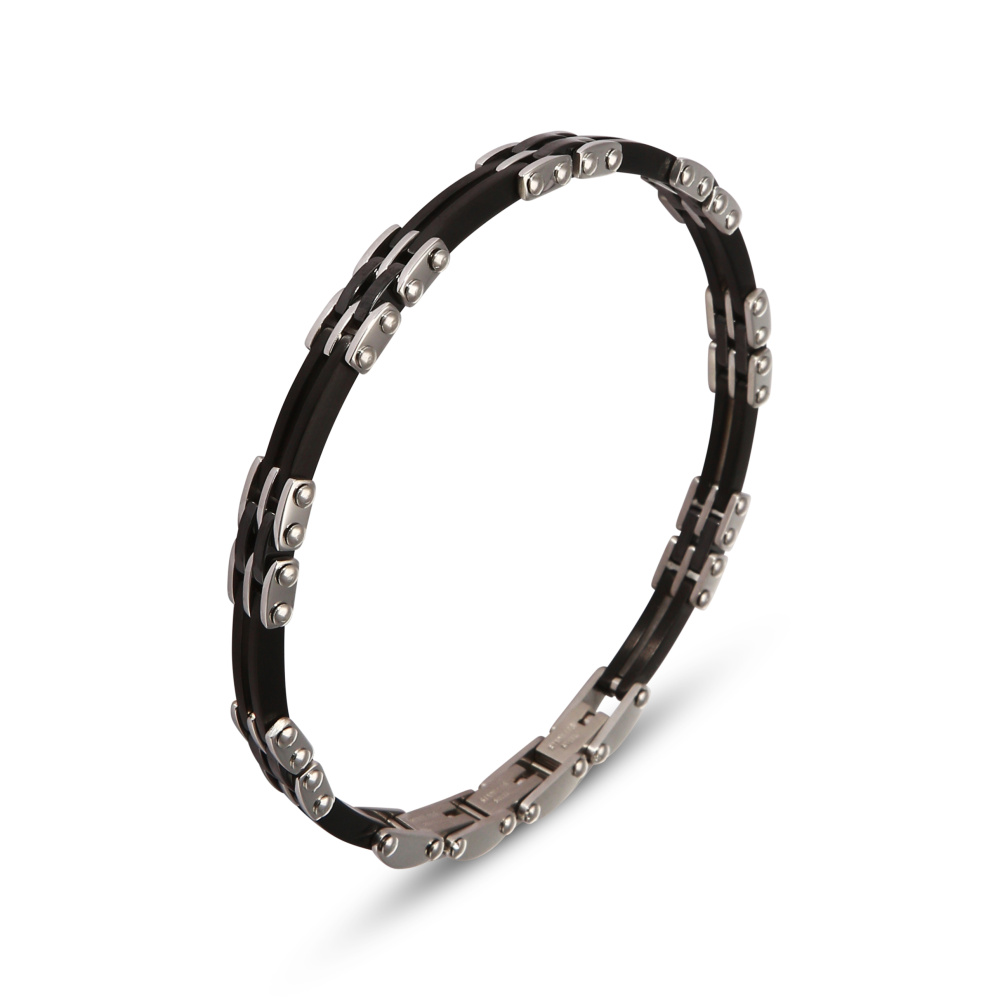 Bracelet Acier Homme gris et noir mat - Ref : 57272