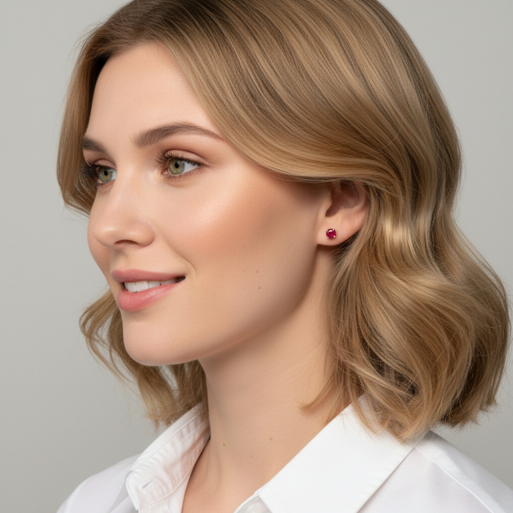 Boucles d'oreilles Or Jaune 750 Rubis Ronds 4.5mm