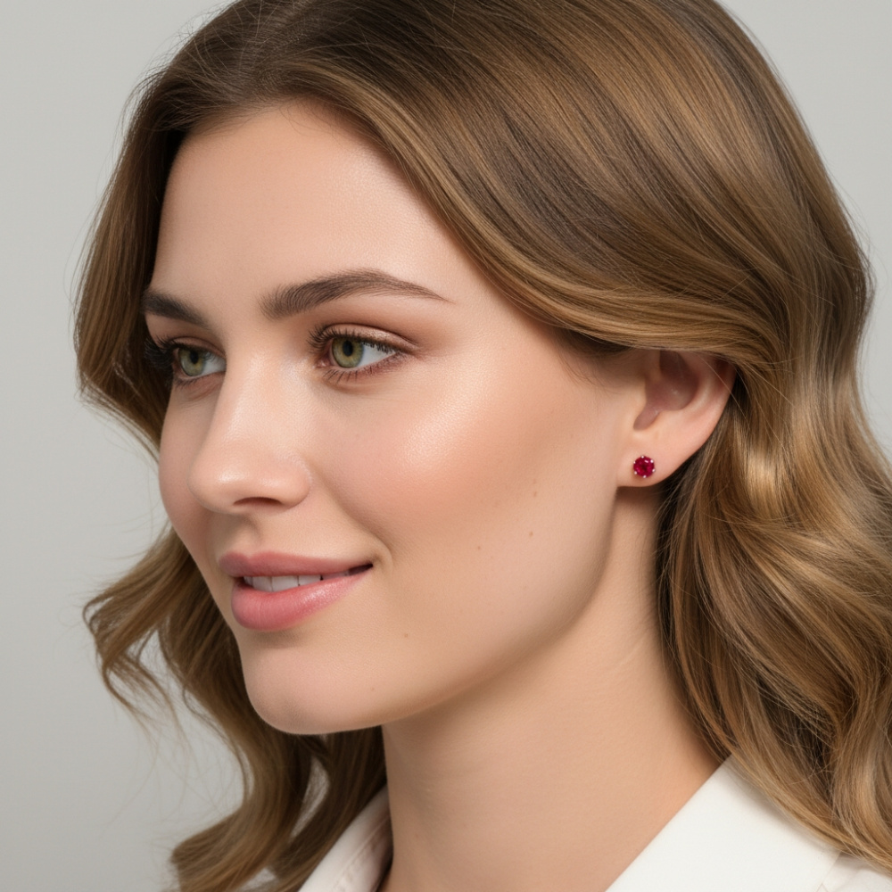 Boucles d'oreilles Or Jaune 750 Rubis Ronds 5mm