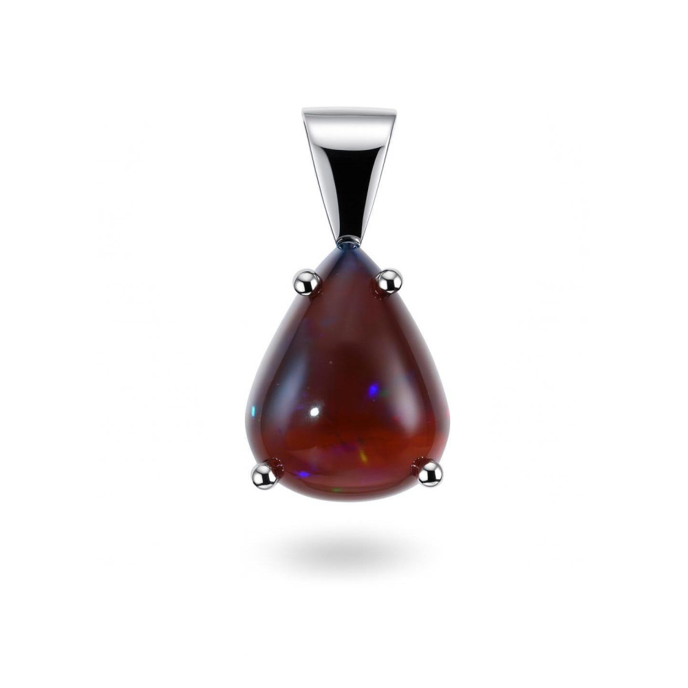 Pendentif Or Blanc 750 Opale Noire Poire 11x9mm - Ref : 57974