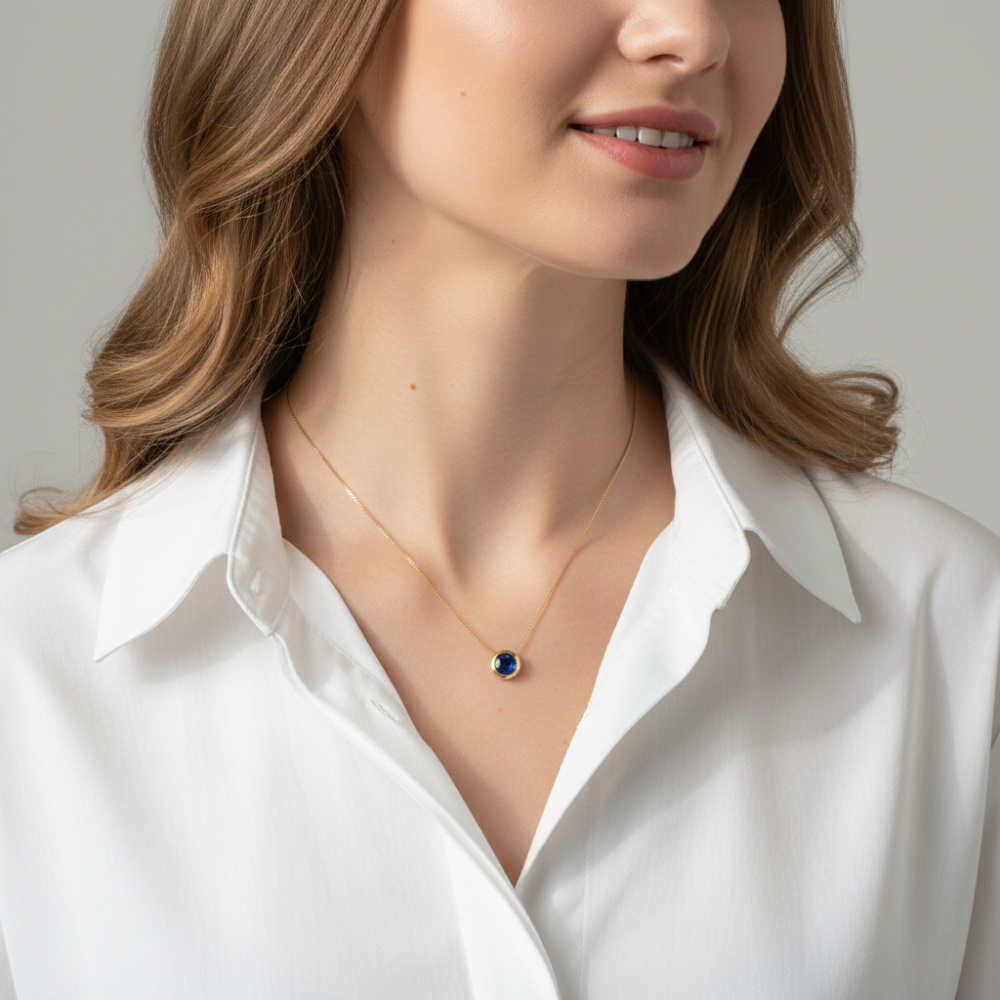 Pendentif Saphir monté sur une chaine maille vénitienne