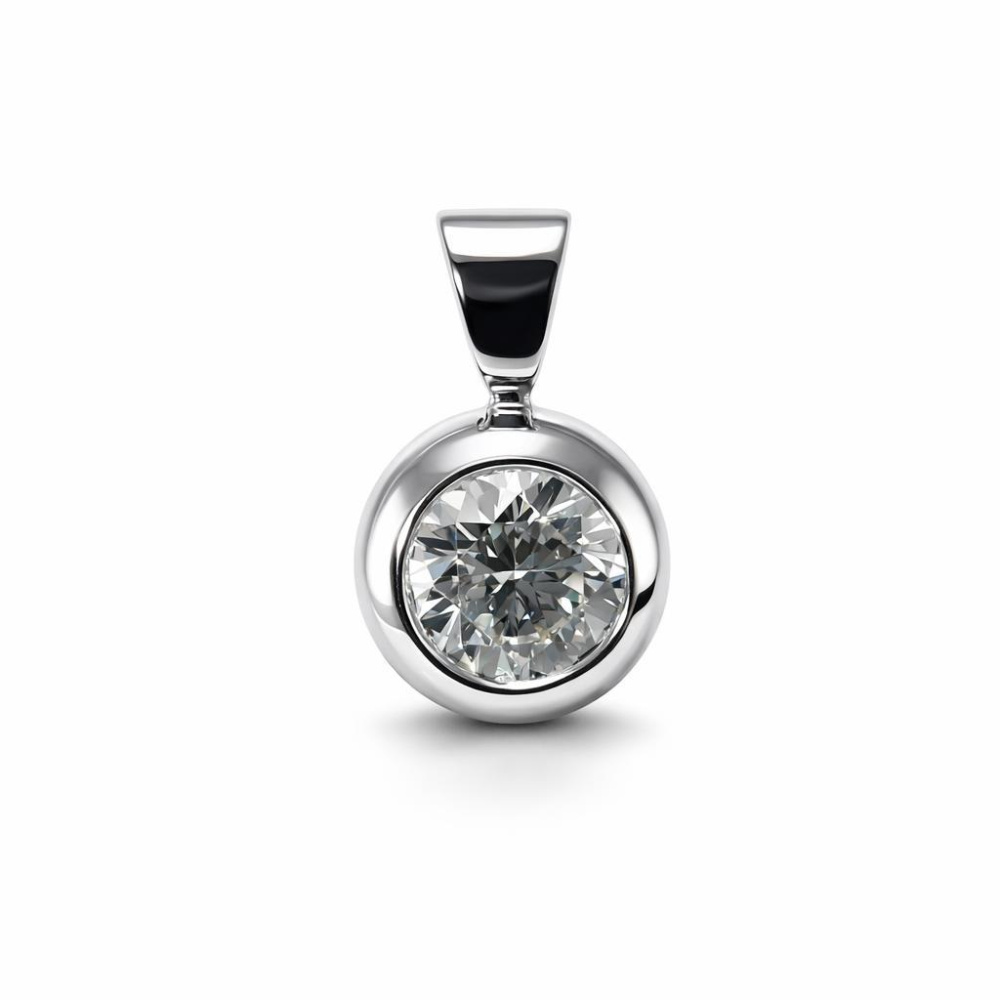 Pendentif Or Blanc 750 Diamant Serti Clos - Ref : 58398