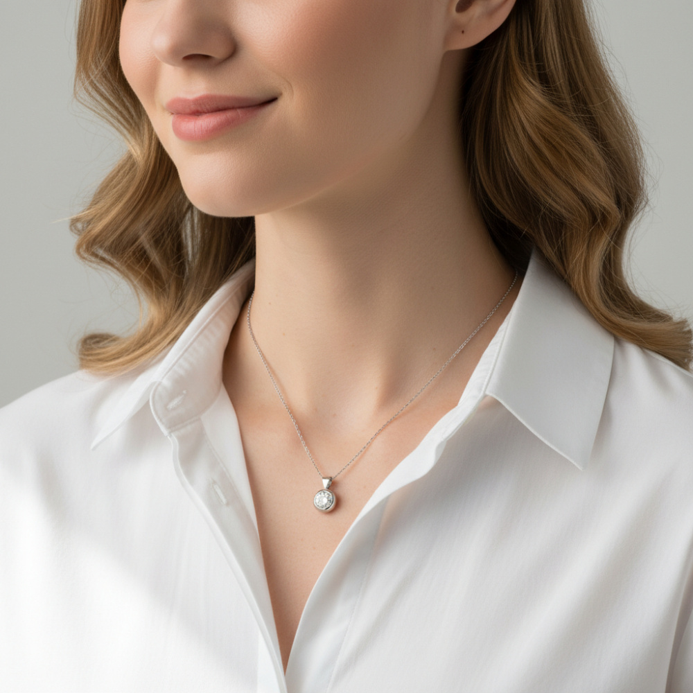Ce pendentif en Or Blanc 750 se distingue par une élégance discrète et contemporaine.