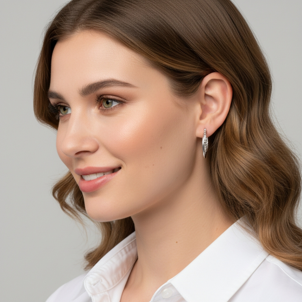 Le système d'attache par tige montée sur une charnière assure une discrétion et une sécurité parfaites, soulignant le confort et la praticité de ces bijoux.