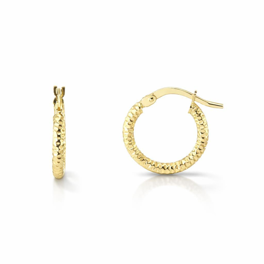 Créoles Argent doré texturées section ronde 2x15mm - Ref : 58331
