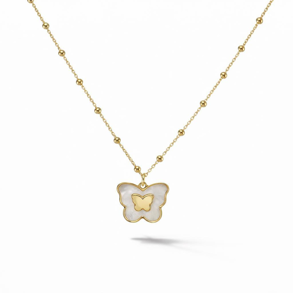 Ce collier en argent 925 doré révèle une élégance subtile à travers son délicat pendentif en forme de papillon.