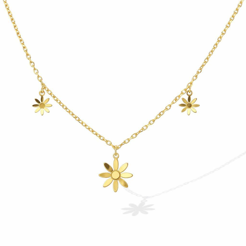 Évoquant la délicatesse d'un champ fleuri, ce collier en argent 925 doré présente un design harmonieux et élégant.