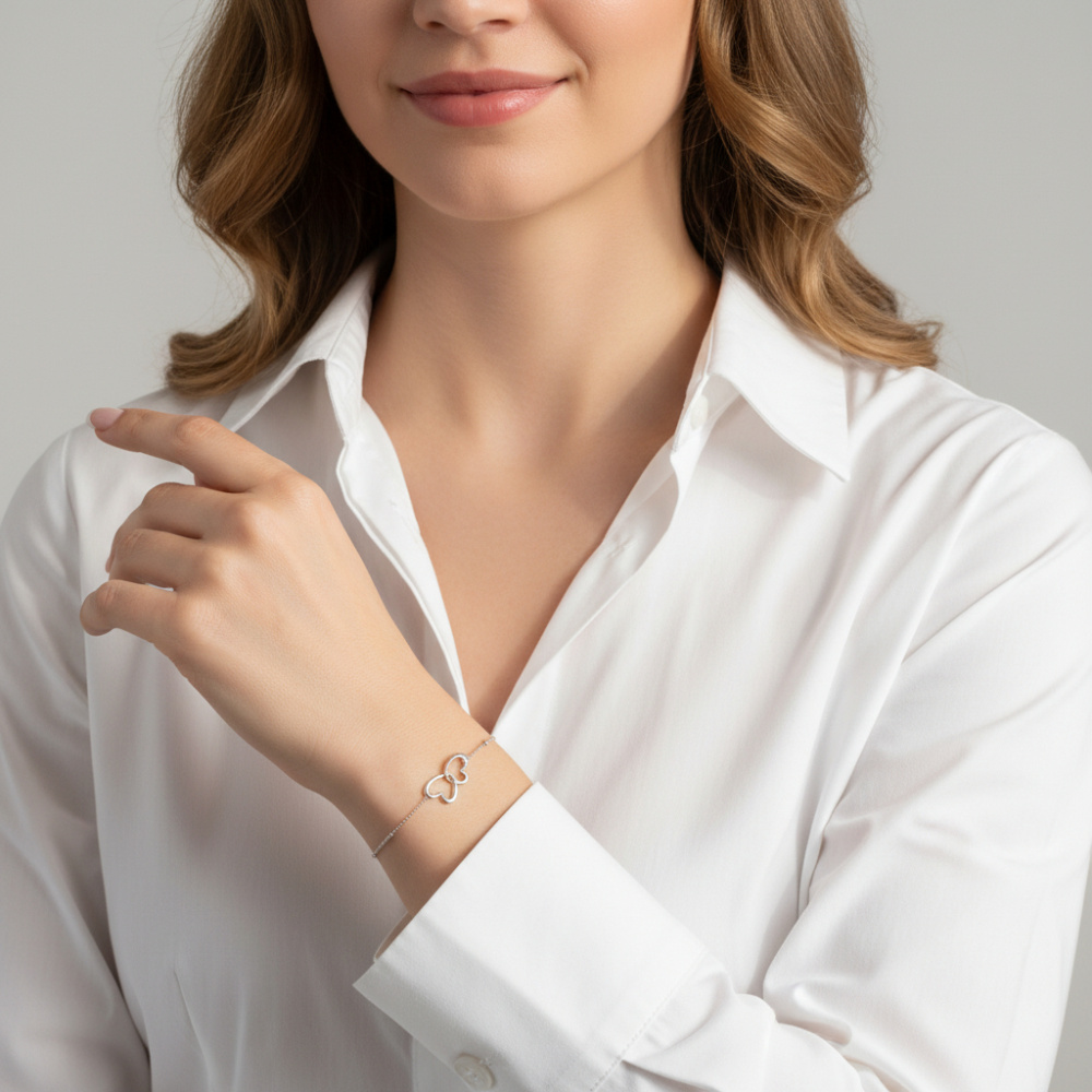 Bracelet Argent 925 rhodié Coeurs entrelacés - Ref : 58357