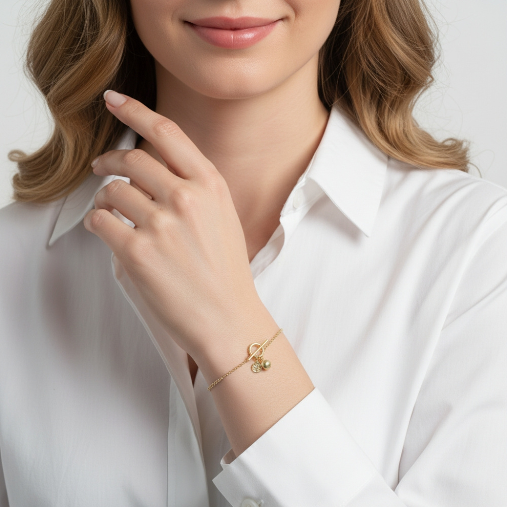 Découvrez ce magnifique bracelet en argent 925 délicatement doré, qui incarne à la fois élégance et subtilité.
