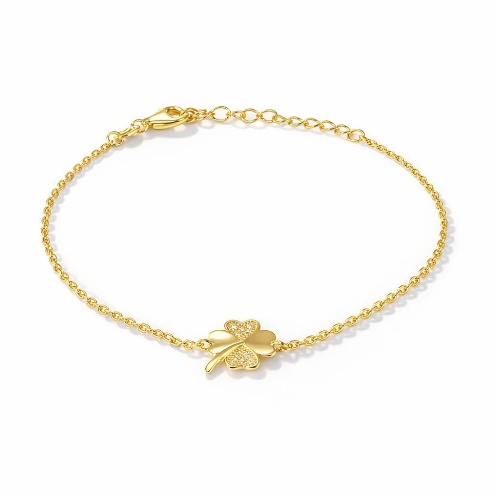 Bracelet Argent 925 doré Trèfle porte bonheur - Ref : 58132
