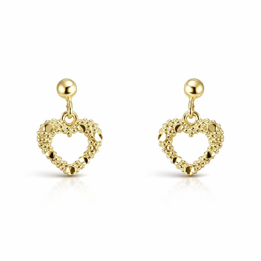 Boucles d'oreilles pendantes en argent 925 doré composées d'un coeur texturé de 10x9mm
