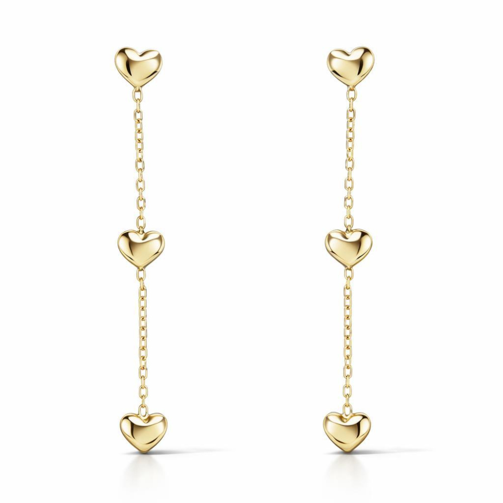 Boucles d'oreilles pendantes en argent 925 doré composées de 3 coeurs de 5x4mm et une chaînette maille forçat de 1,1mm de large
