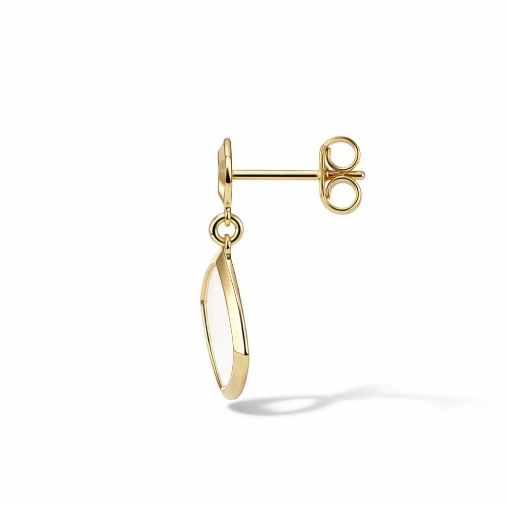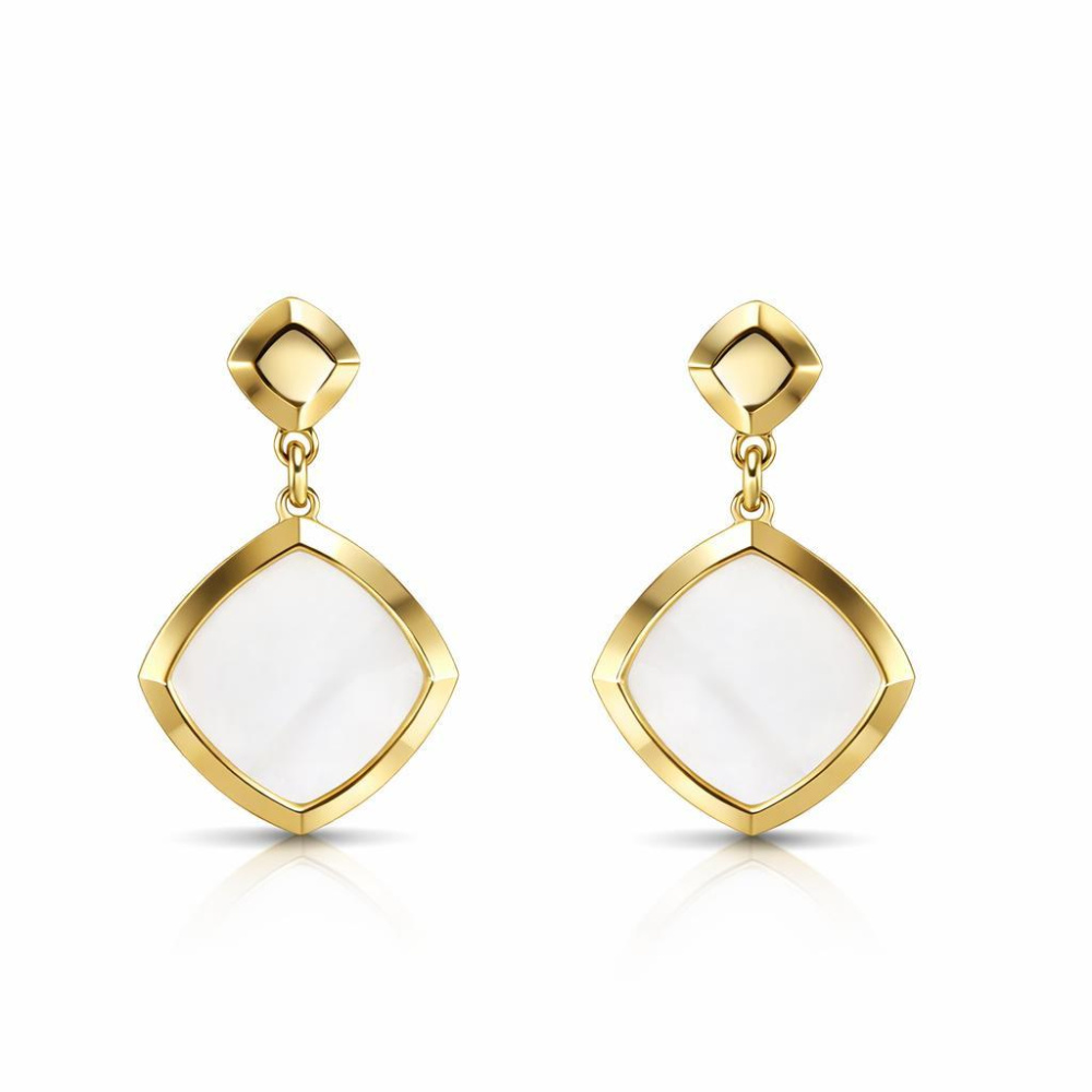 Boucles d'oreilles pendantes en argent 925 doré composées d'un losange de 14x14mm serti de nacre