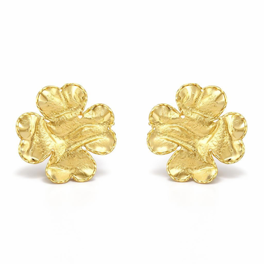 Boucles d'oreilles puces Argent 925 doré Trèfle porte bonheur - Ref : 58284