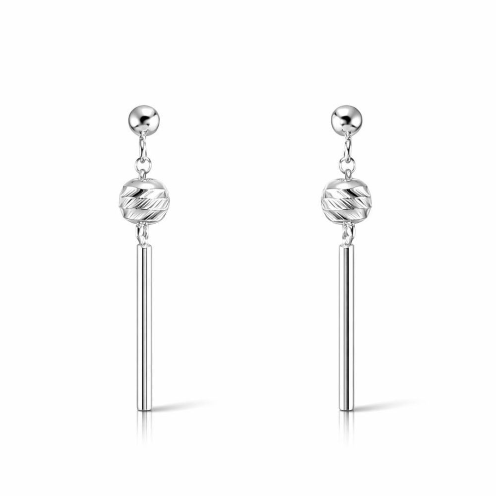 Boucles d'oreilles pendantes Argent 925 rhodié boule d'argent et barre - Ref : 58252