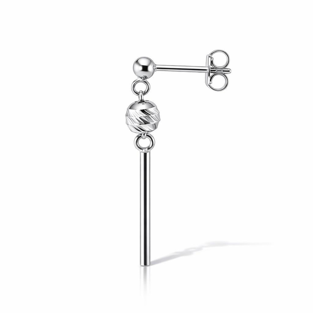 Boucles d'oreilles pendantes en argent 925 rhodié composées d'une boule d'argent ciselée de 5mm de diamètre et une barre section ronde de 1,5x15mm