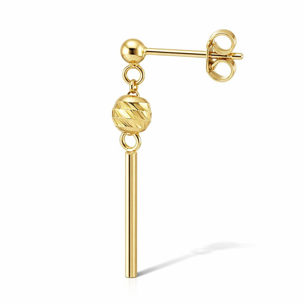 Boucles d'oreilles pendantes en argent 925 doré composées d'une boule d'argent ciselée de 5mm de diamètre et une barre section ronde de 1,5x15mm