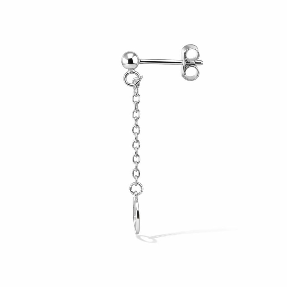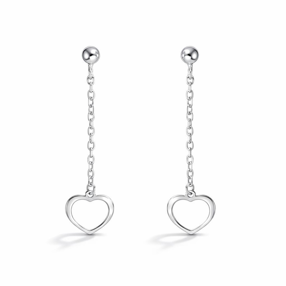 Boucles d'oreilles pendantes en argent 925 rhodié composées d'un coeur de 8x7mm et d'une chaînette maille forçat de 1,3mm de large