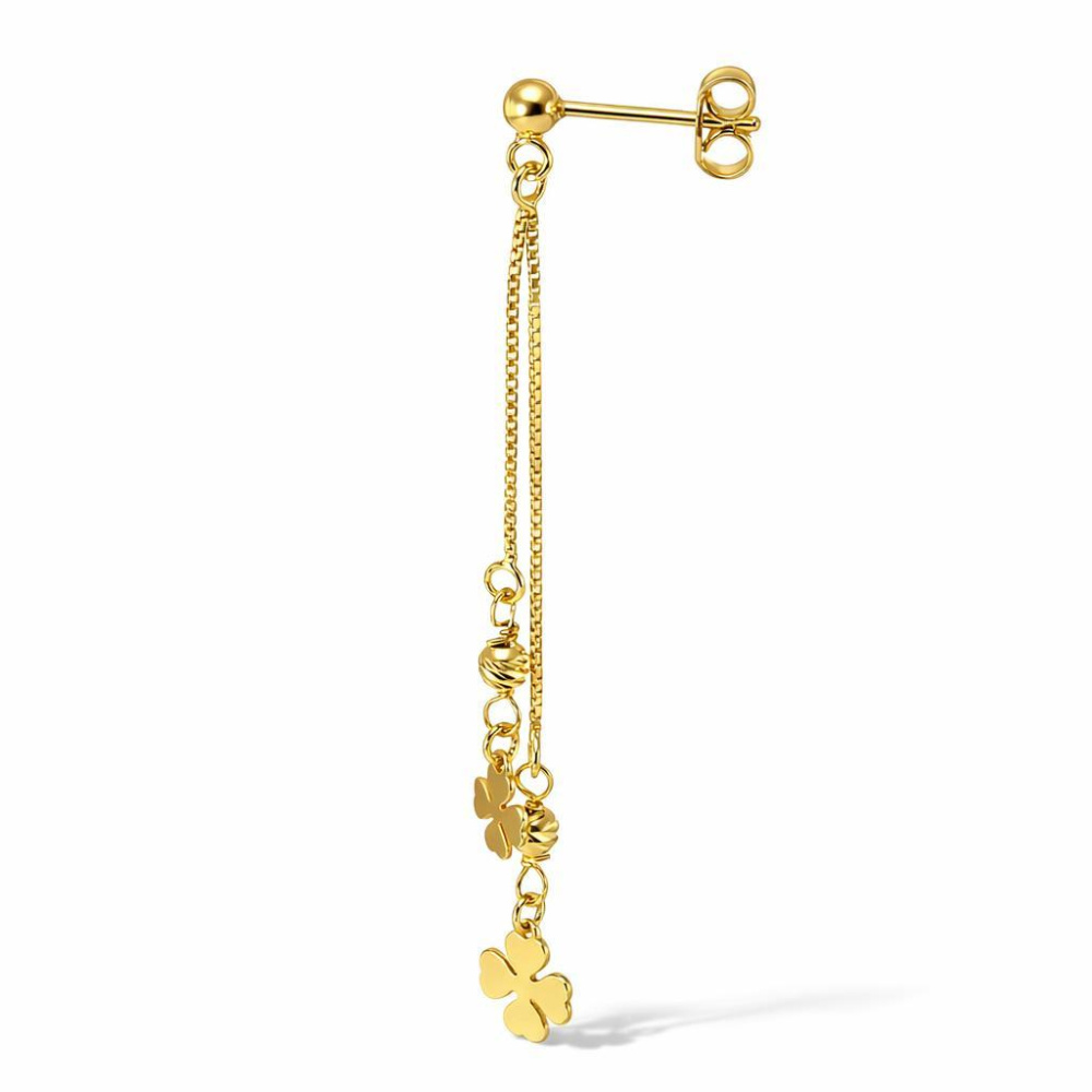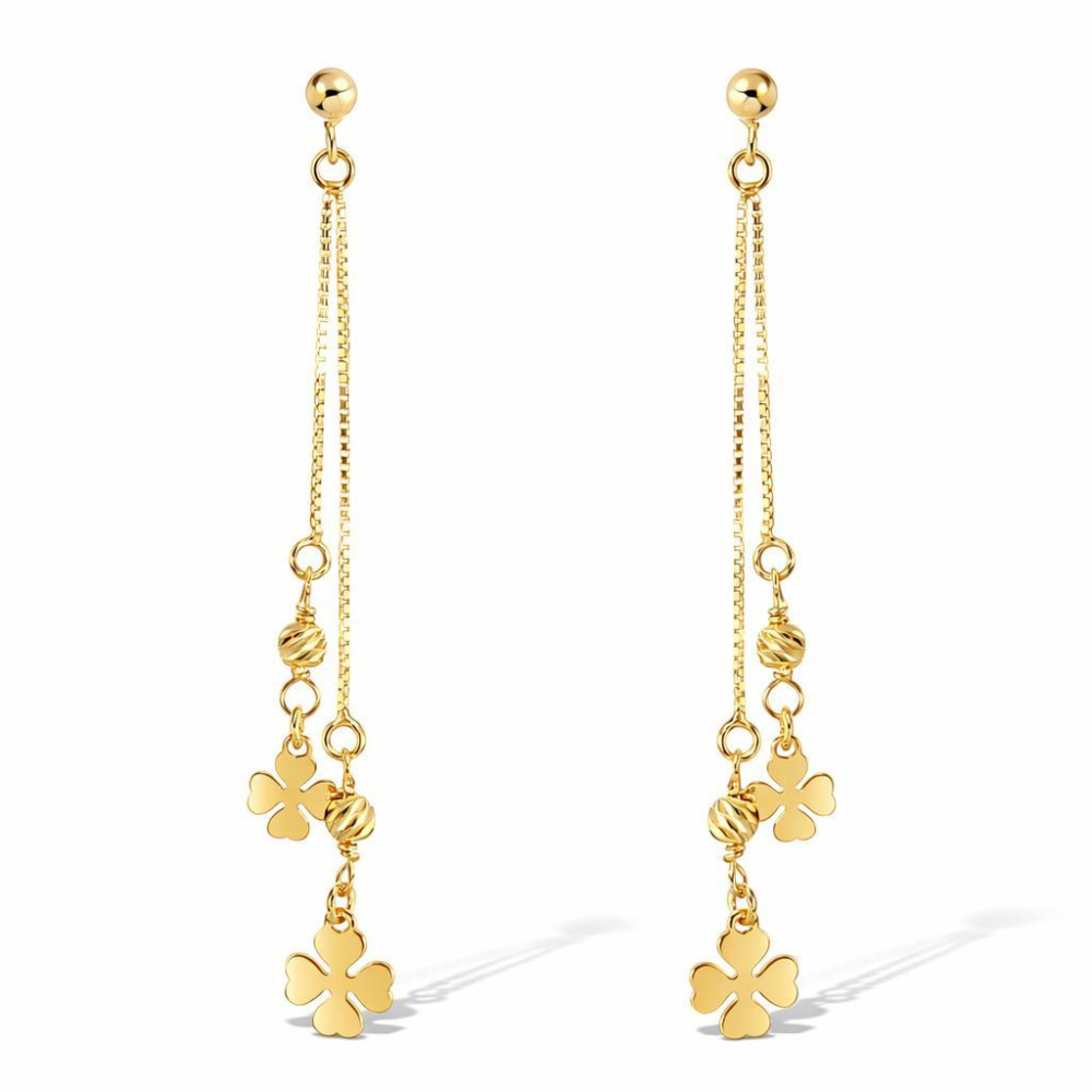Boucles d'oreilles pendantes Argent 925 doré trèfle porte bonheur - Ref : 58241