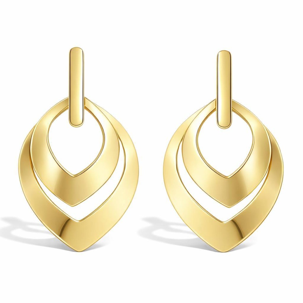 Boucles d'oreilles pendantes en argent 925 doré composées de 2 navettes dont la plus grande mesure 22x27mm